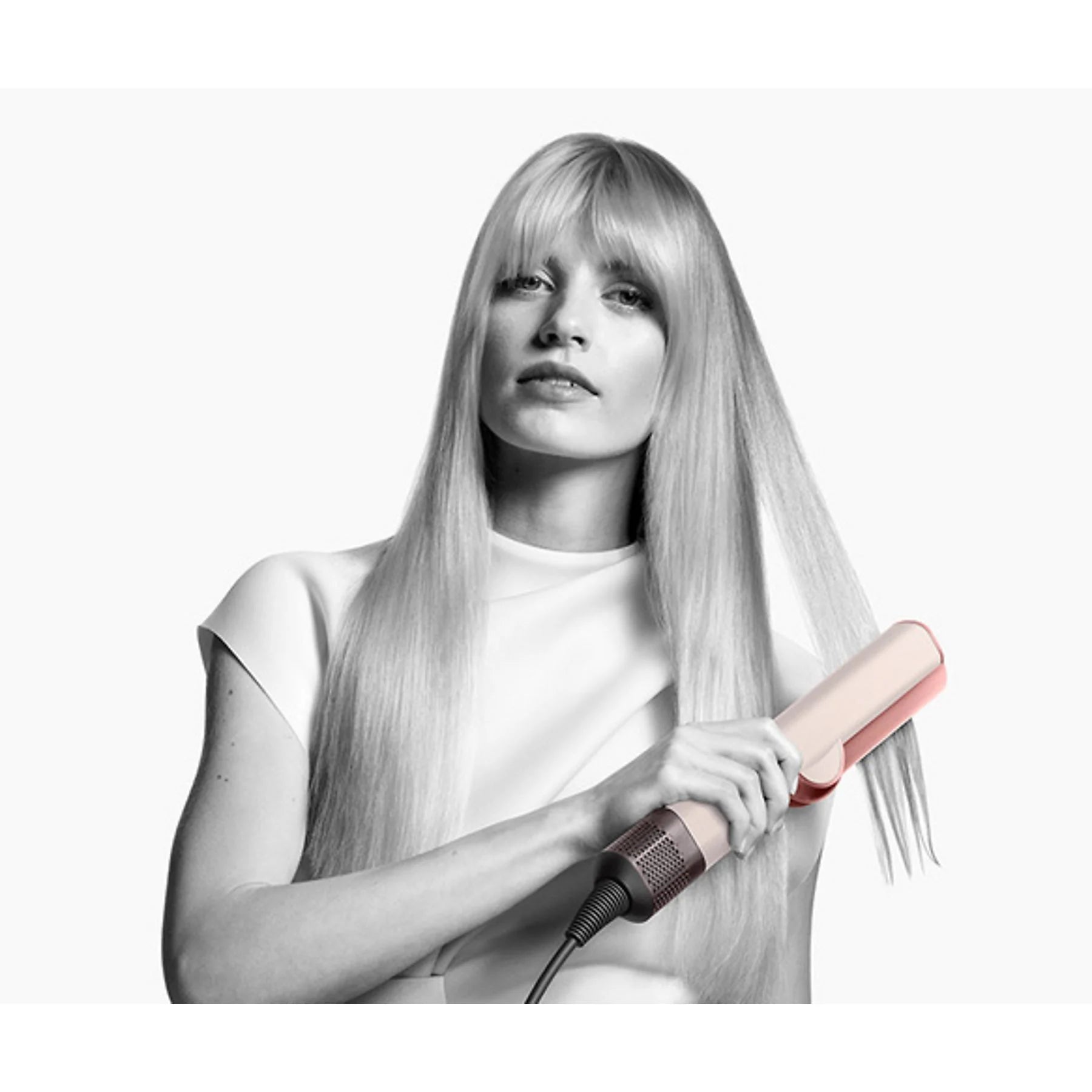 Consigue un peinado profesional en casa con nuestra herramienta 2 en 1 que combina plancha y secado en un solo dispositivo. Perfecta para todo tipo de cabello, húmedo o seco.
